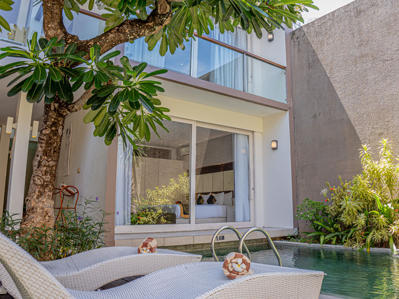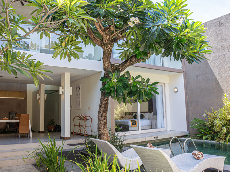 ASA Bali Luxury Villas & Spa comprises 2 Two Bedrooms Pool Villas, each open air in style, combines a fully equipped kitchenette, the dining corner and a spacious living room area with a private swimming pool surrounding within a lush tropical Zen garden. Ten distinctly styled villas are each equipped with modern conveniences and luxurious amenities. These modern luxury homes exude a sense of serenity, with touches of Balinese elements in the décor.