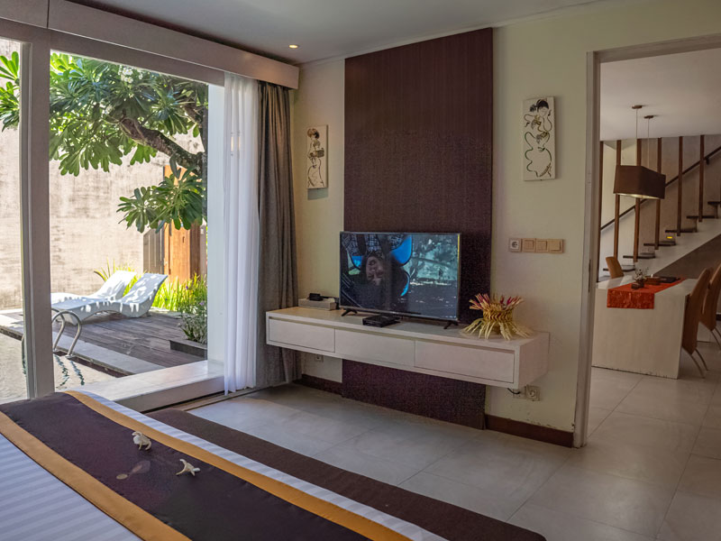 Luxurious decorated Two Bedroom Family Villas are arranged adjoined to one another, making them ideal for families or travelling companions, offering two private elegant master bedrooms with bed side sliding window in each bedroom, wooden closet and a luxurious bathroom with shower stall and bath tub, open air living room, kitchenette and dining area with stylish inside garden, private wooden sundeck pool surrounded with tropical lush garden.